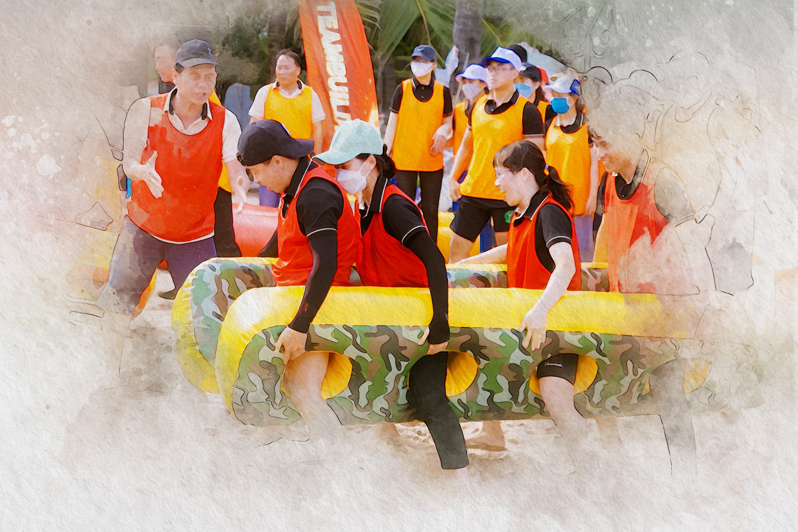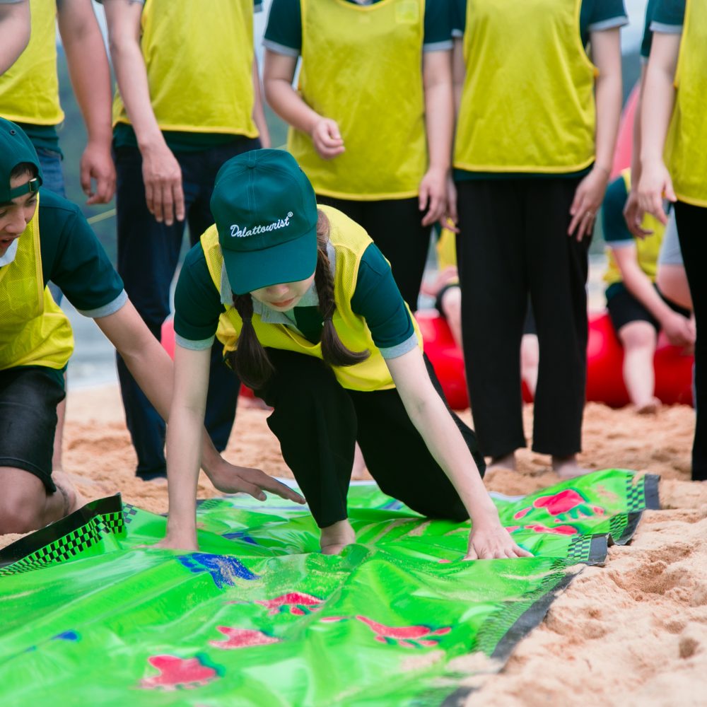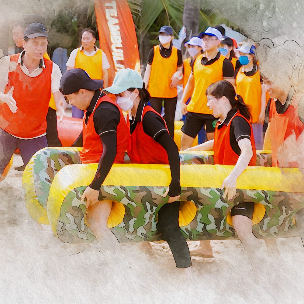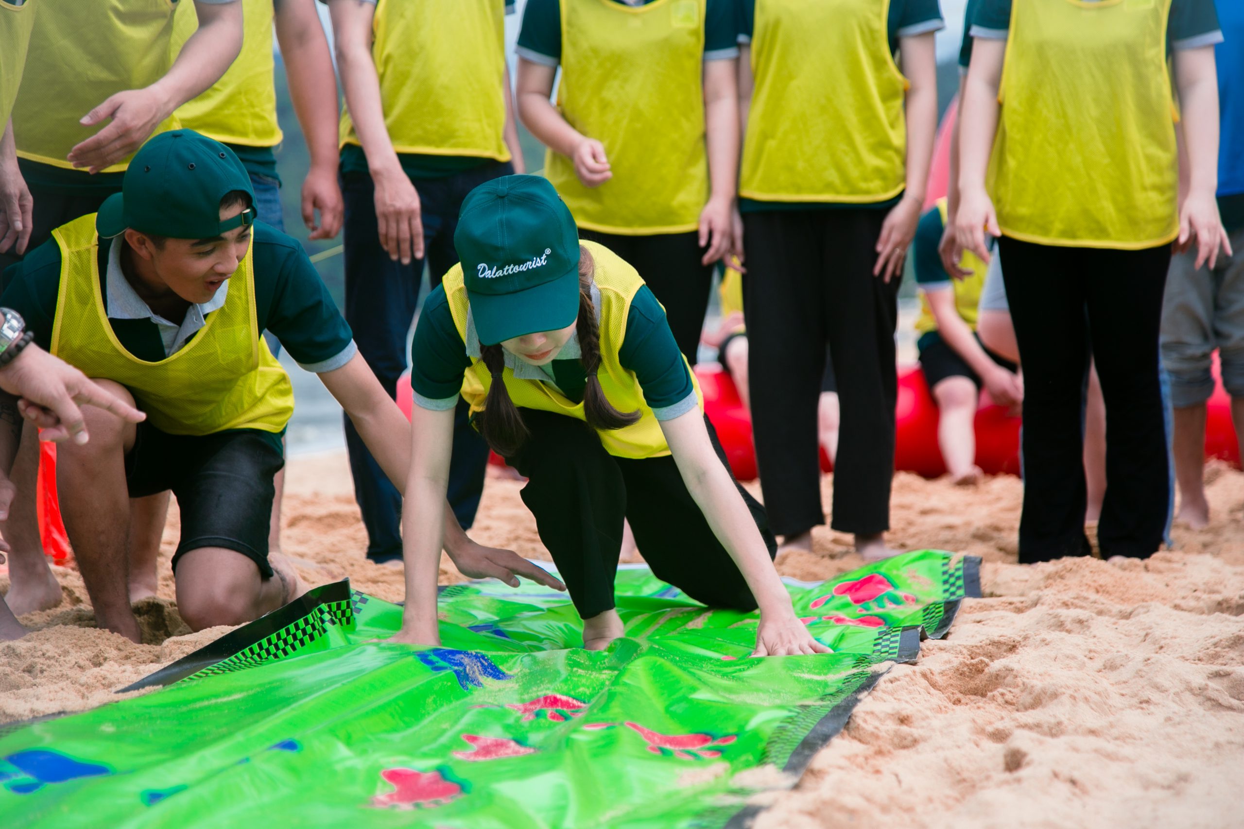 Cùng nhau vượt chướng ngại vật: Đội phải phối hợp vượt qua các thử thách (băng qua gậy).