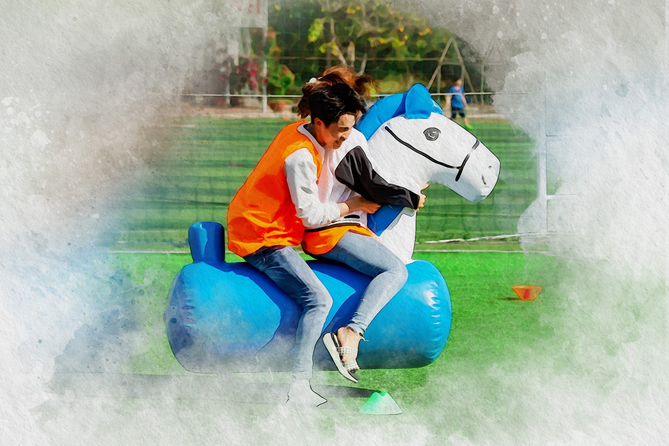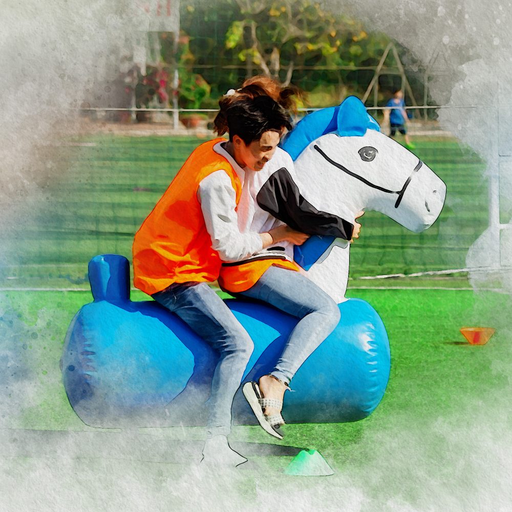 02 thành viên/lượt cưỡi ngựa bật nhảy vể đích sau đó 1 thành viên ôm ngựa về lại giao cho 02 thành viên khác tiếp tục cho đến khi hết người trong đội.